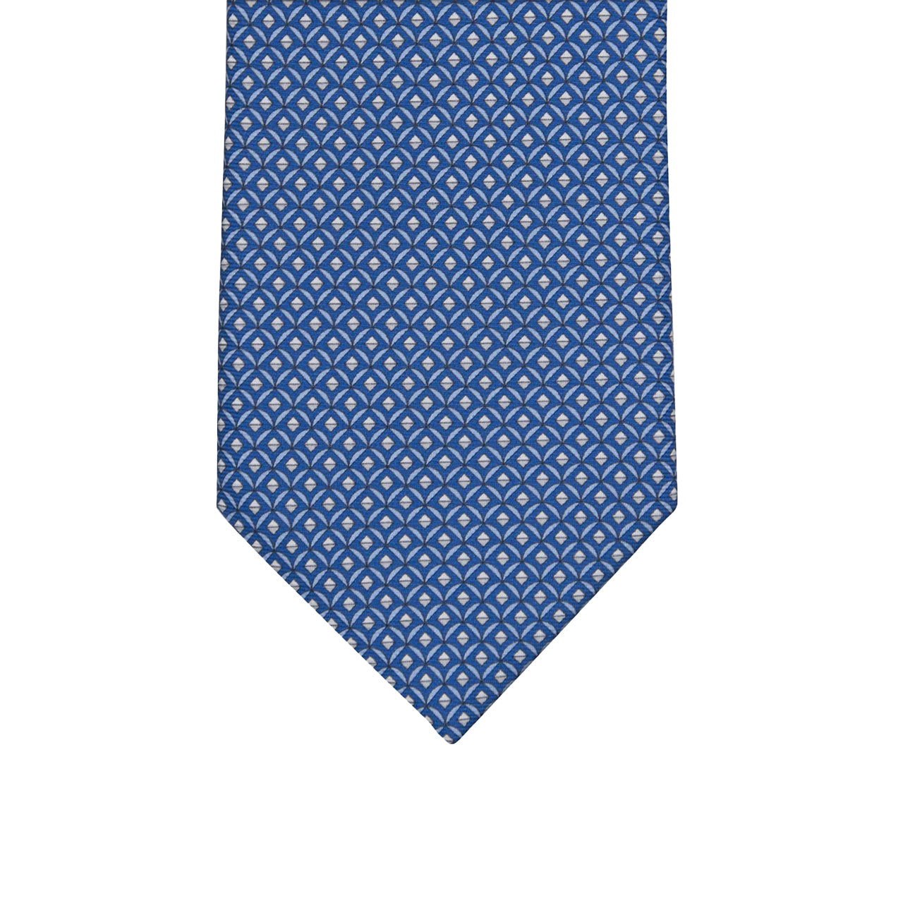 3-fold Silk Tie with Geometric Pattern in Blue - M49301