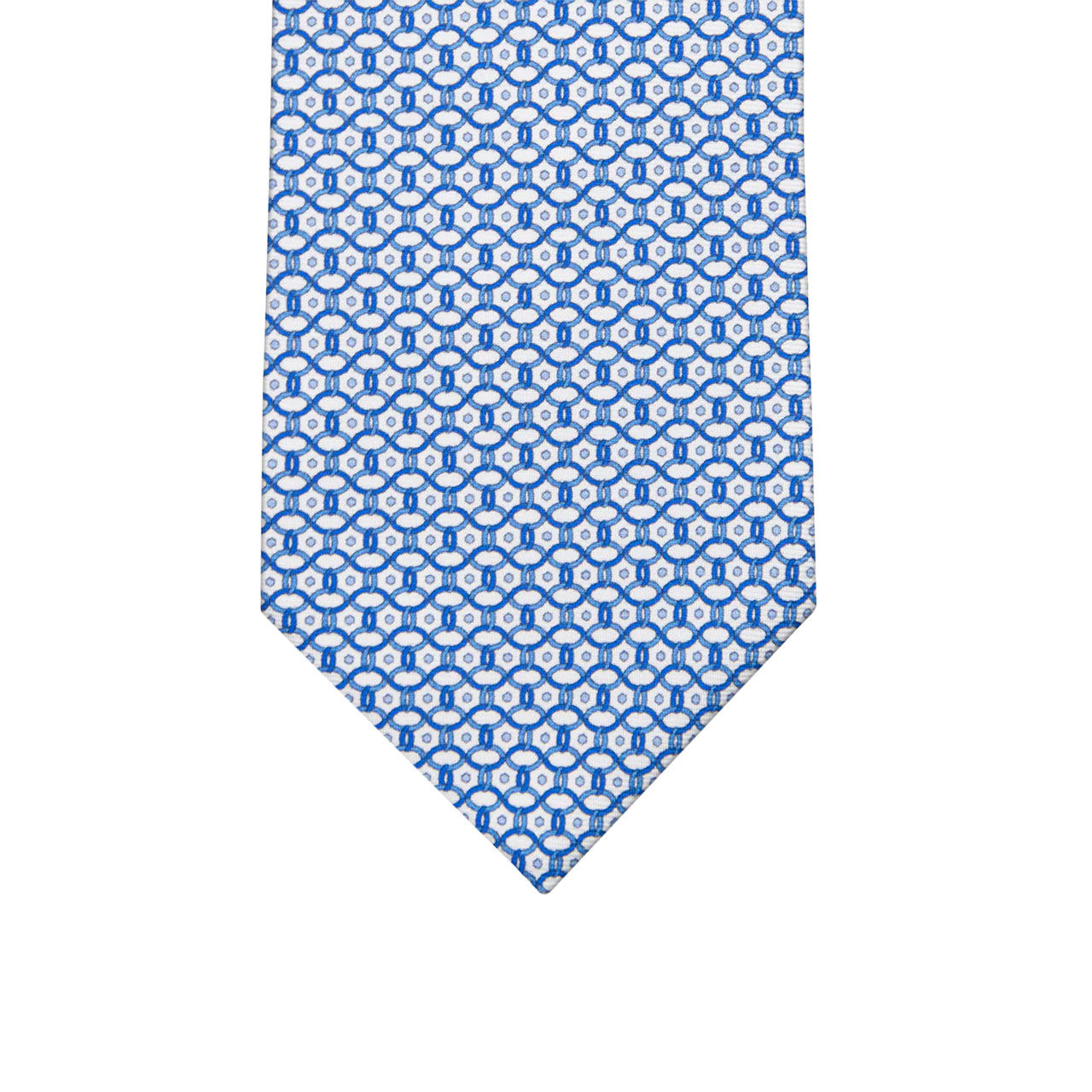3-fold Tie in White Linked Pattern Silk - MO9962