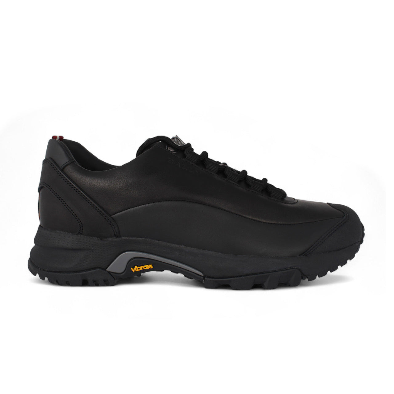 The Bally Trail Runner Vibram Sneaker combines luxurious craftsmanship with rugged functionality. Crafted from premium black leather, it features a durable Vibram® rubber sole engineered for superior grip and stability on varied terrains. The streamlined silhouette and tone-on-tone stitching enhance its contemporary appeal, while cushioned interiors ensure all-day comfort. Perfect for urban exploration or casual outdoor wear, this sneaker blends Swiss precision with everyday practicality.