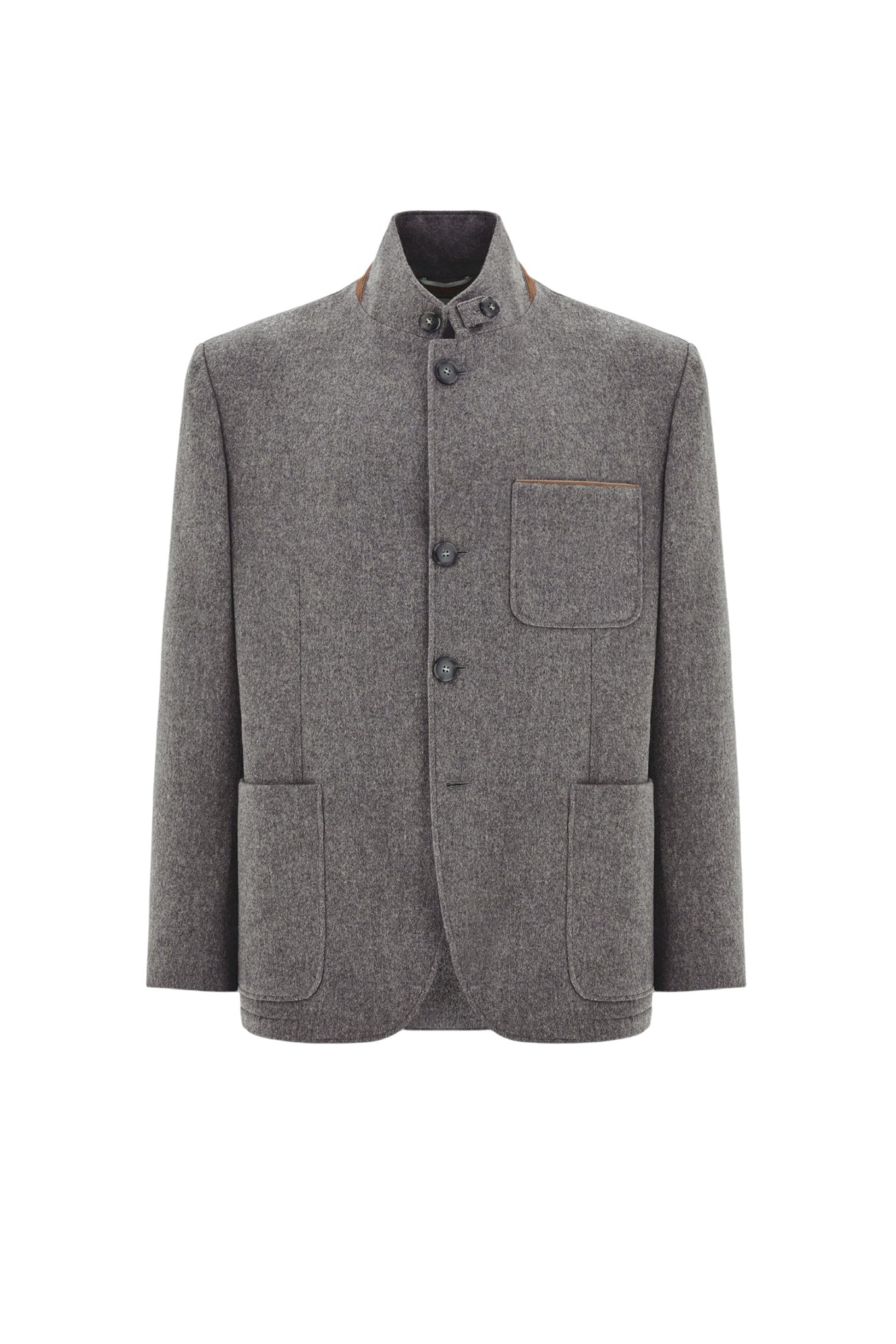 Canali Bruma unlined single-breasted jacket in pure cashmere, embellished with refined handcrafted suede details and dual-purpose embroidery on the collar. A piece that combines elegance, comfort, and craftsmanship, designed for the man who wants to stand out with style on every occasion.