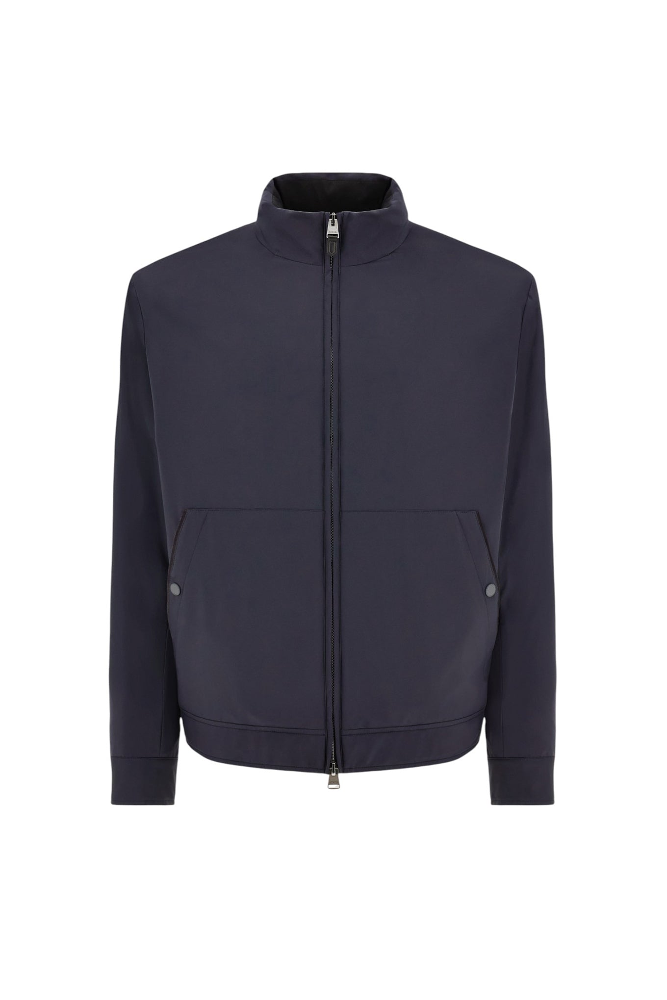 A stylish jacket made of an innovative technical fabric resistant to wind and rain. The removable hood and adjustment at the hem make it a perfect piece for any occasion, accompanying movements with discretion. Careful design and Italian craftsmanship transform practicality into an expression of personal style, ideal for the man who seeks a dynamic and refined look. - Stand-up collar jacket with set-in sleeves - Removable hood - Technical fabric details - Central fastening with double-slider zipper and leather zipper puller - Patch hand pockets with snap button - Cuffs with snap button - Suede details - Genuine leather tag - Lined piece - Patch pockets - Hem adjustment with coulisse - 100% Polyester with membrane - Rain & Wind - Made in Italy