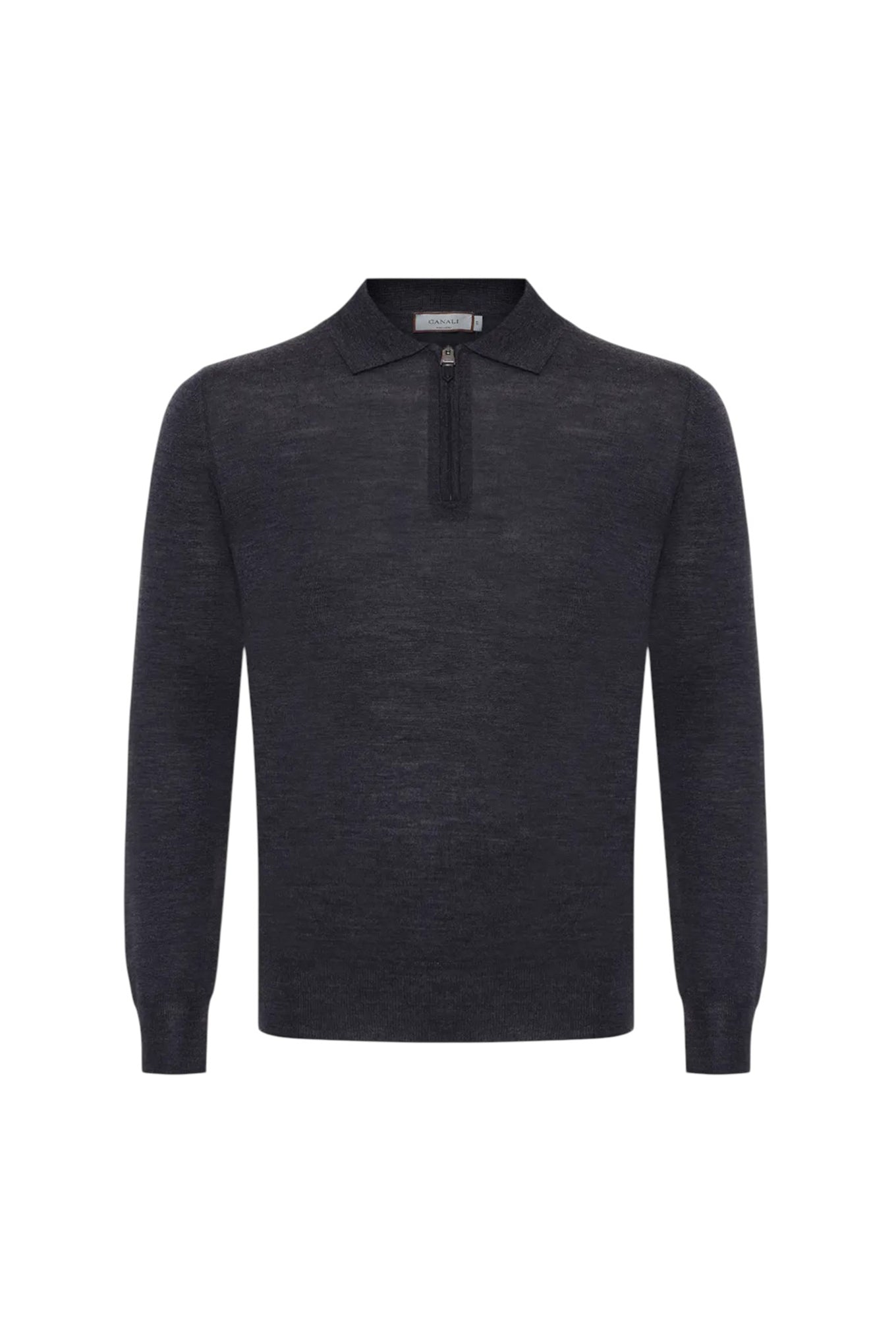 Dark gray soft wool knit polo shirt from CANALI. - Semi-fitted silhouette with long sleeves, elastic ribbed cuffs and waistband, turn-down collar, and a chest zip closure.