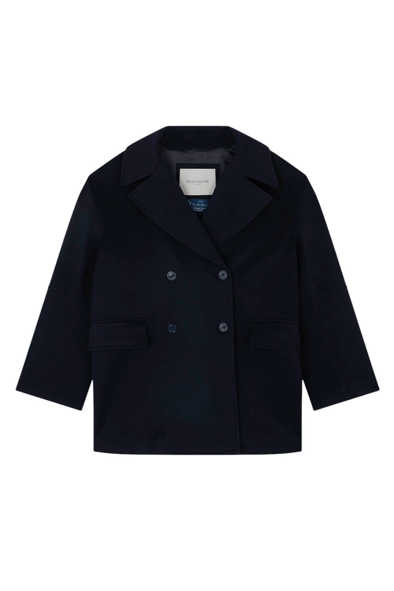 Elegance meets versatility to redefine a timeless style inspired by the nautical world. This women’s peacoat is crafted from cashmere produced in Italy with Loro Piana's Green Storm System®: a Loro Piana registered trademark that makes the fabric waterproof and wind-resistant, without altering the softness or comfort of the natural fibre. Sartorial details elevate its boxy cut Metal Shark Fin application Satin lining Double-breasted closure with logo buttons Double-breasted cashmere caban Green Storm System® Made in Italy by Loro Piana® Pockets with flap Boxy Fit