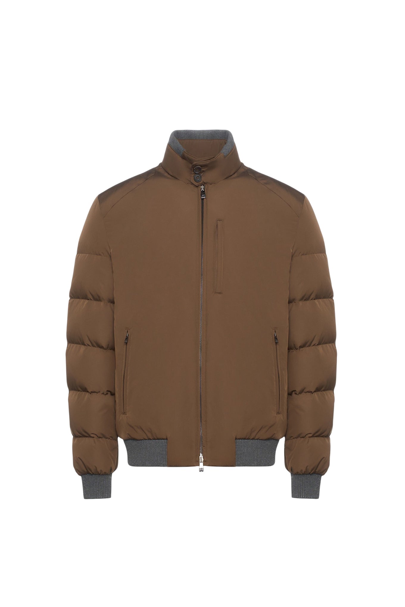 This quilted-sleeve jacket from the Corneliani collection is the perfect complement to your winter looks. Duck down and feather filling provides high levels of insulation, reliably protecting you from cold and wind. Slit pockets are perfect for storing small items, making this jacket practical, and the buttoned stand-up collar ensures extra comfort in windy weather. Contrast panels add a sophisticated touch, highlighting the luxurious Italian tradition. Compound: 100% Polyester Filling: 90% Duck Down, 10% Duck Feather Country of design: ITALY