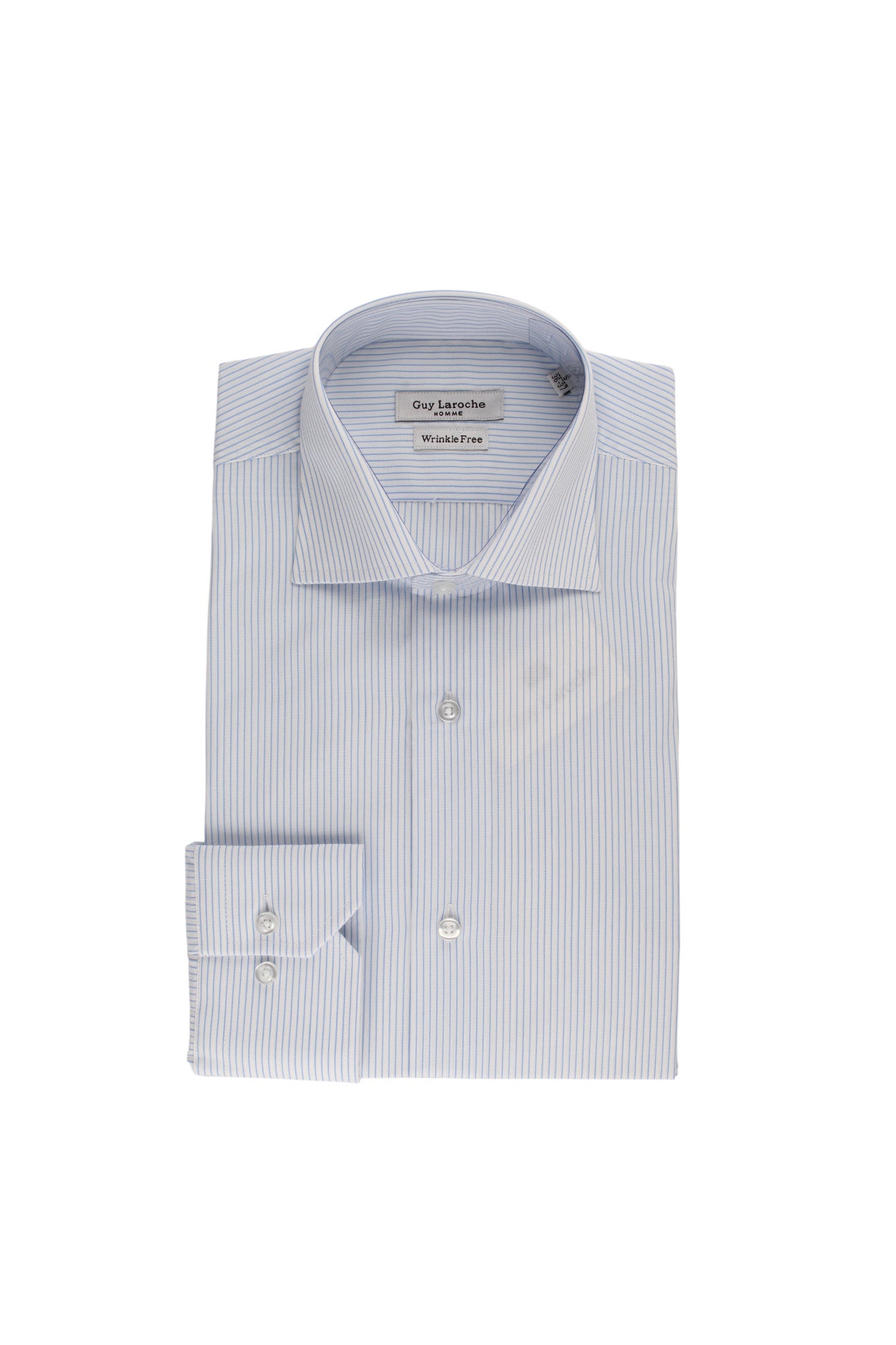 Classic light blue shirt with subtle vertical pinstripes, offering timeless Parisian elegance. Crafted in wrinkle-free cotton for all-day comfort and sophistication.