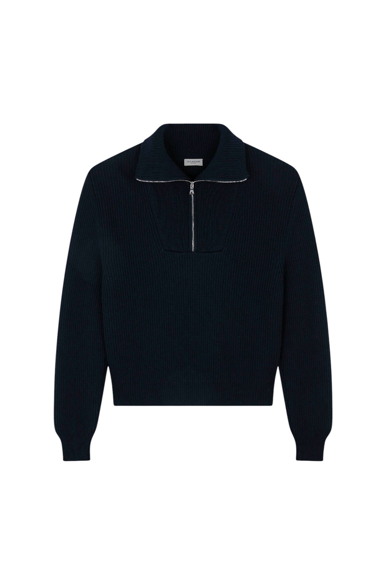 Half-zip sweater in extrafine Merino wool, gauge 7