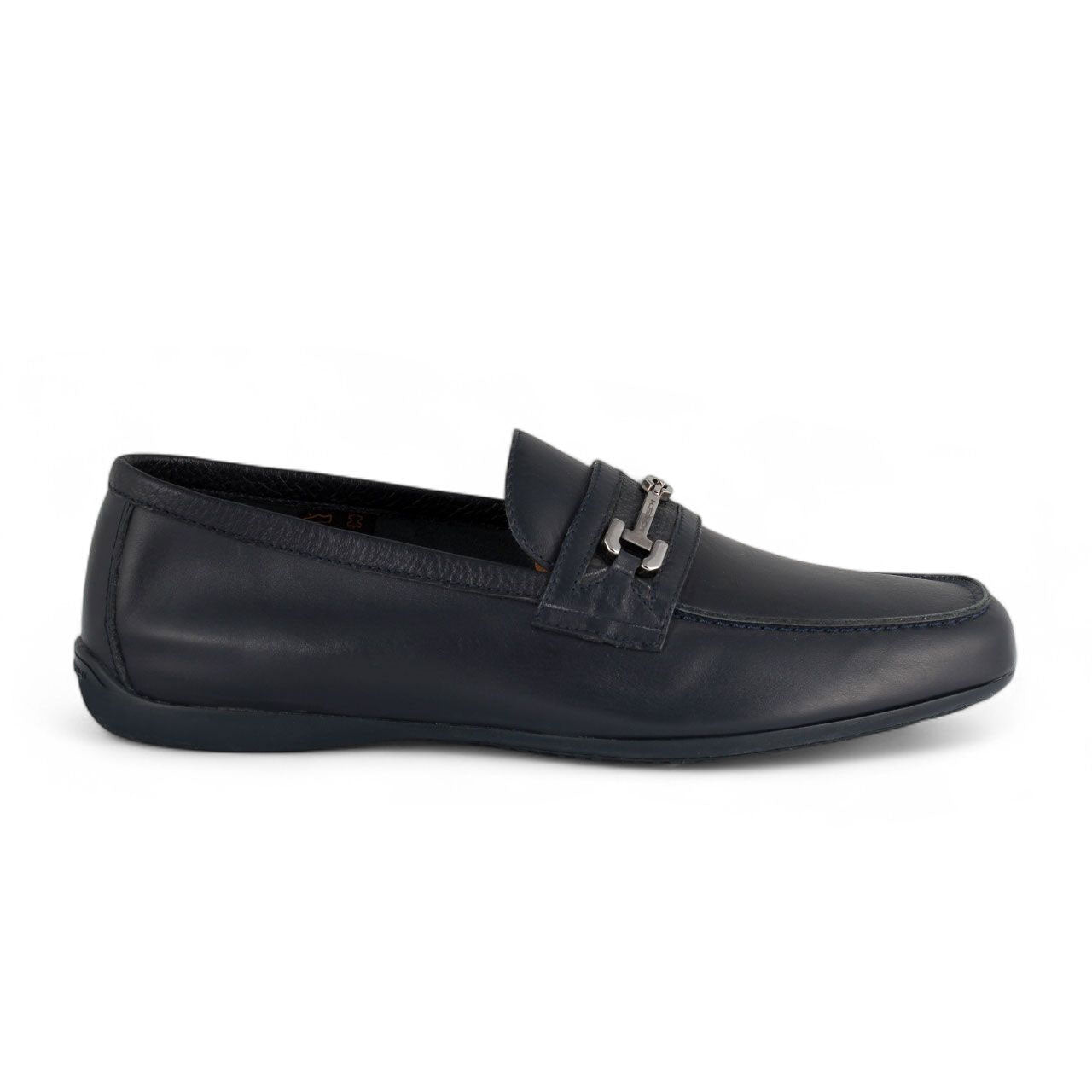The Moreschi Elba Bit Loafer blends relaxed elegance with refined detail. Made from supple navy leather, this loafer features a sleek silhouette and a polished metal horsebit for a touch of sophistication. The flexible rubber sole ensures all-day comfort, making it an ideal choice for smart-casual looks and daily luxury wear. Crafted in Italy for effortless style with every step.