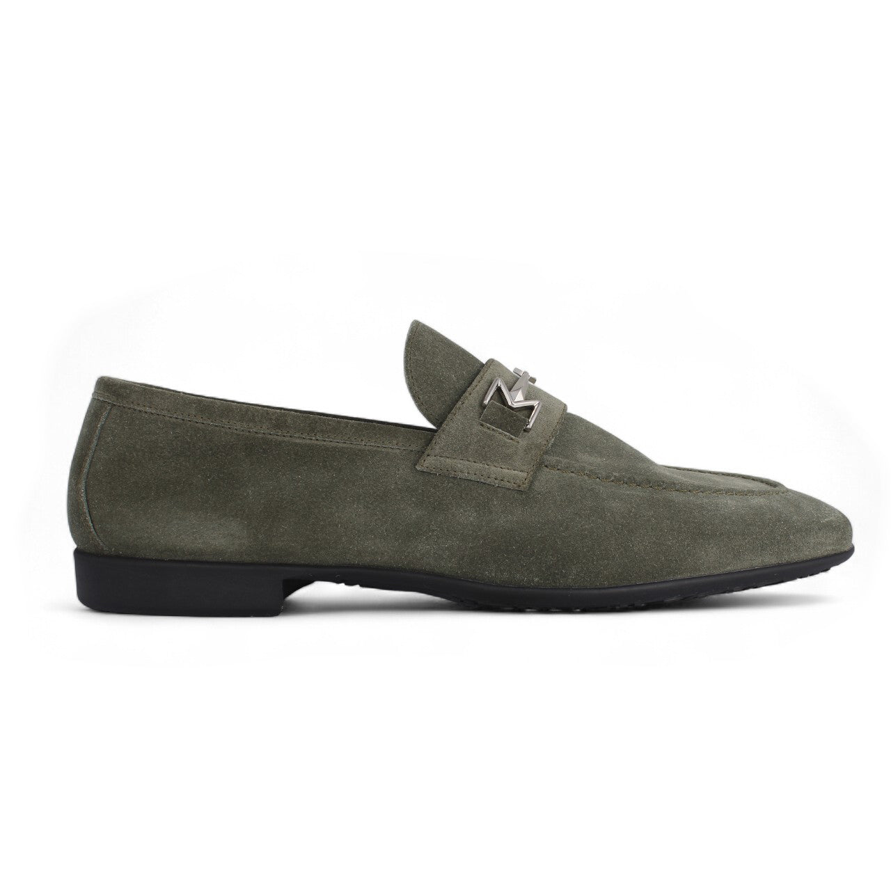 Crafted from premium olive-green suede, the Moreschi Salerno Suede Loafer stands out with its bold metallic “M” emblem. The lightweight rubber sole and soft texture offer supreme comfort and modern flair — a sophisticated choice for effortless luxury and distinctive Italian style.