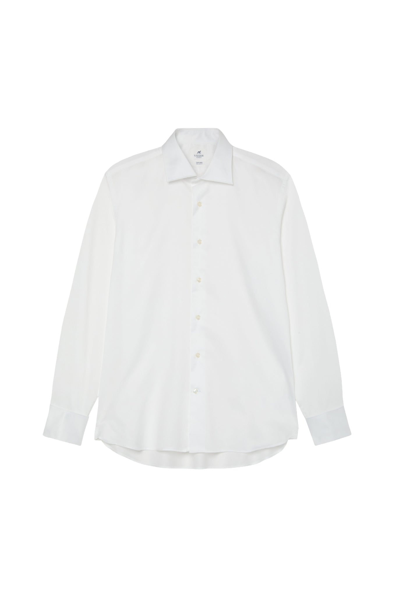 Regular Fit Twill Formal Shirt With Oxford Collar And Double Cuff