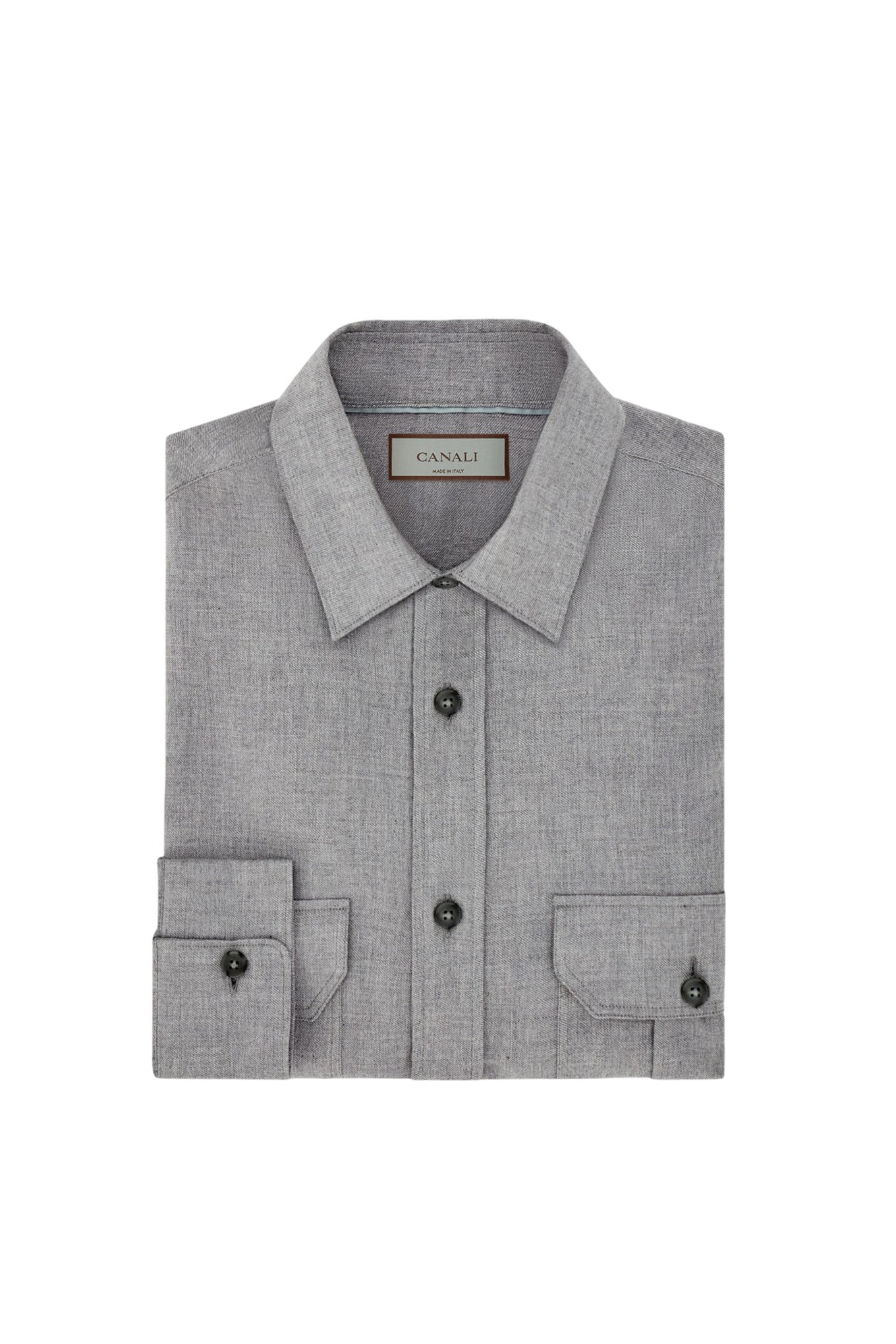 Ideal for those seeking comfort and contemporary style, this cotton and cashmere blend casual shirt offers softness and a fluid fit. The fine details and relaxed silhouette make it a versatile garment, perfect for a distinctive and sophisticated casual look. - Casual shirt - Chest pockets - Collar height 4 cm - Front with placket 95% cotton, 5% cashmere - Made in Italy