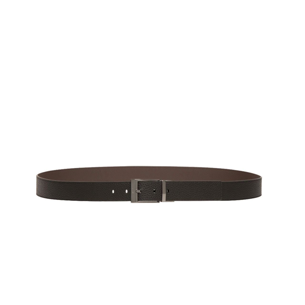Adjustable and reversible, the Shiffie 35mm belt offers a choice of ebony or black leather. The rectangular buckle at the front, in polished ruthenium-tone metal, is embellished by an essential debossed Bally logo. Height 3.5cm Grained leather Reversible and adjustable Ruthenium buckle Product Code: 6308170
