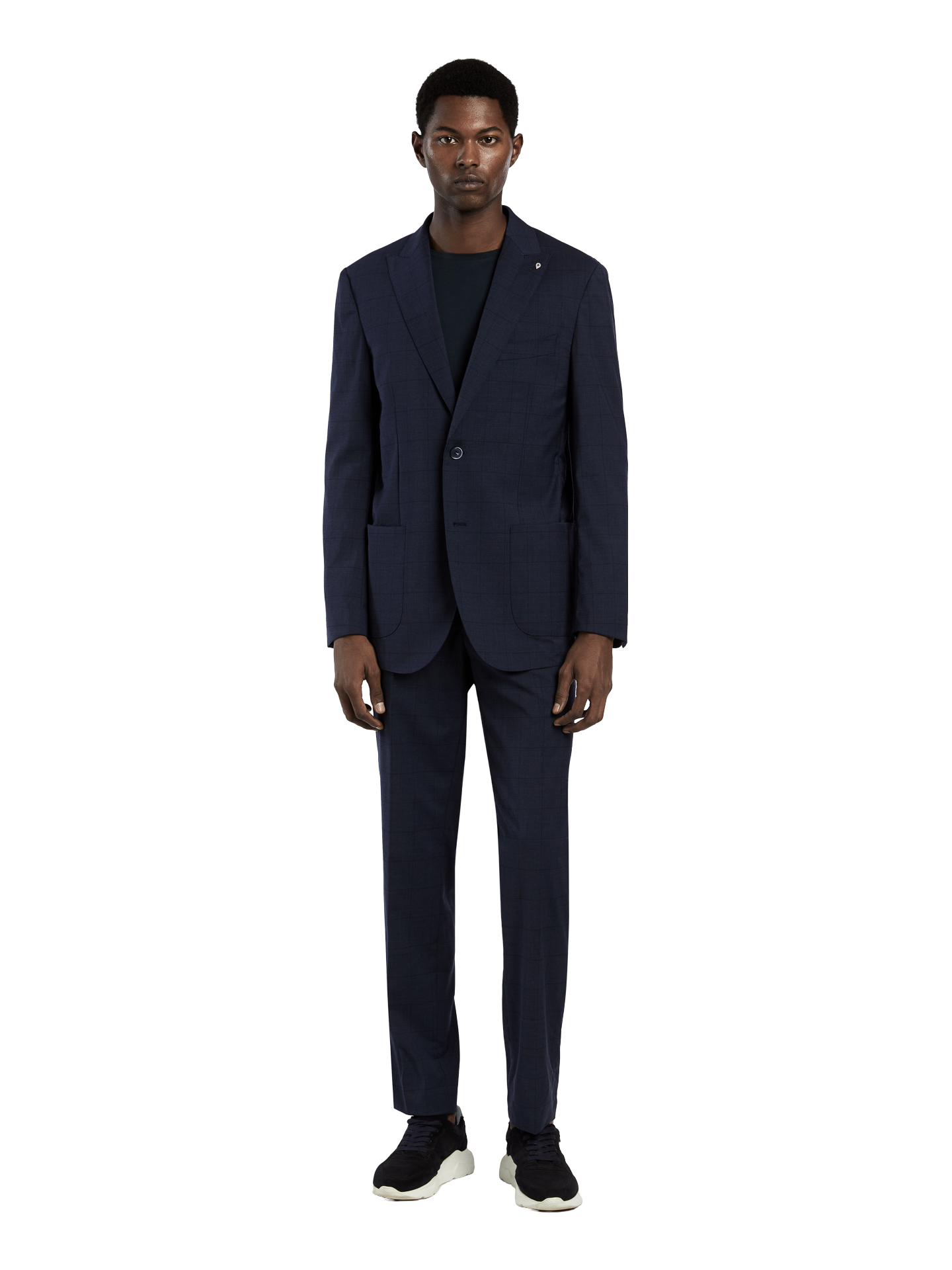Performance suit expertly tailored from high performance wool with added elastane fibres mean every suit can offer perfect comfort and an excellent fit, the top-performance yarns guarantee excellent elasticity, breathability, and crease resistant. This slim fit two-piece suit creates a relaxed silhouette that is ideal for all profiles. Two-button blazer with peak lapels and patch pockets, four-button cuffed, two back slits, It's partially lined for comfort and a more casual fit. Trousers with zip fly and button extended waistband fastening, two side pockets with coin pocket, two back welt pockets and belt loops. All suits have regular fitting measures from sizes 56 to 62. This suit is ideal for office wear and for those situations when looking impeccable is essential. Suits for every occasion. Once you’ve tried them, you’ll never want to take them off.