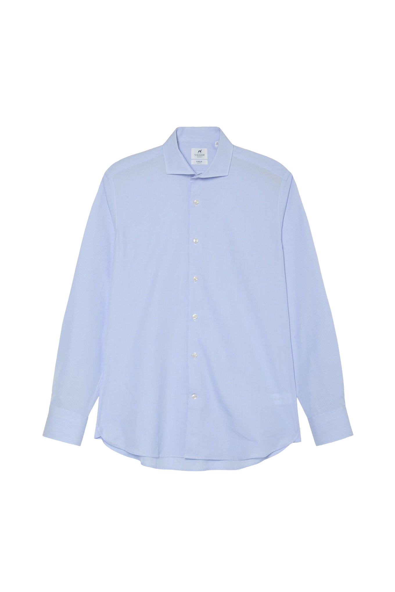 This long-sleeve shirt is cut in a slim fit from poplin fabric with a refined stripe pattern, offering lightweight comfort and sharp structure. It features a Dublin collar, single placket, and standard cuffs. The shirt includes a discreet pleat on the sleeve, triangle inserts at the side seams in self-fabric, a horizontal last buttonhole in contrast thread, and off-white buttons. Detailed with removable collar stays and reinforced construction for durability. Available in regular fit sizes starting from size 44. This shirt is perfect for office wear and any occasion where a sharp look matters.