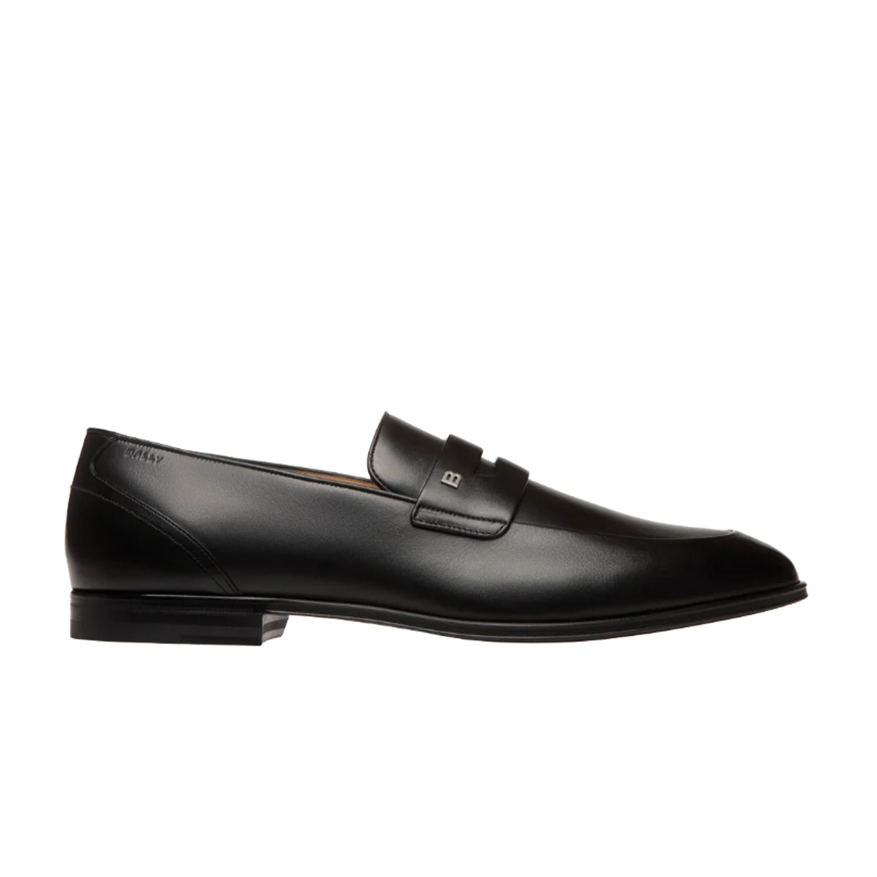 This classic Westminster loafer is meticulously crafted in black calfskin with a refined finish. A saddle strap extends across the top, embellished with a Bally B detail in palladium-hue metal.